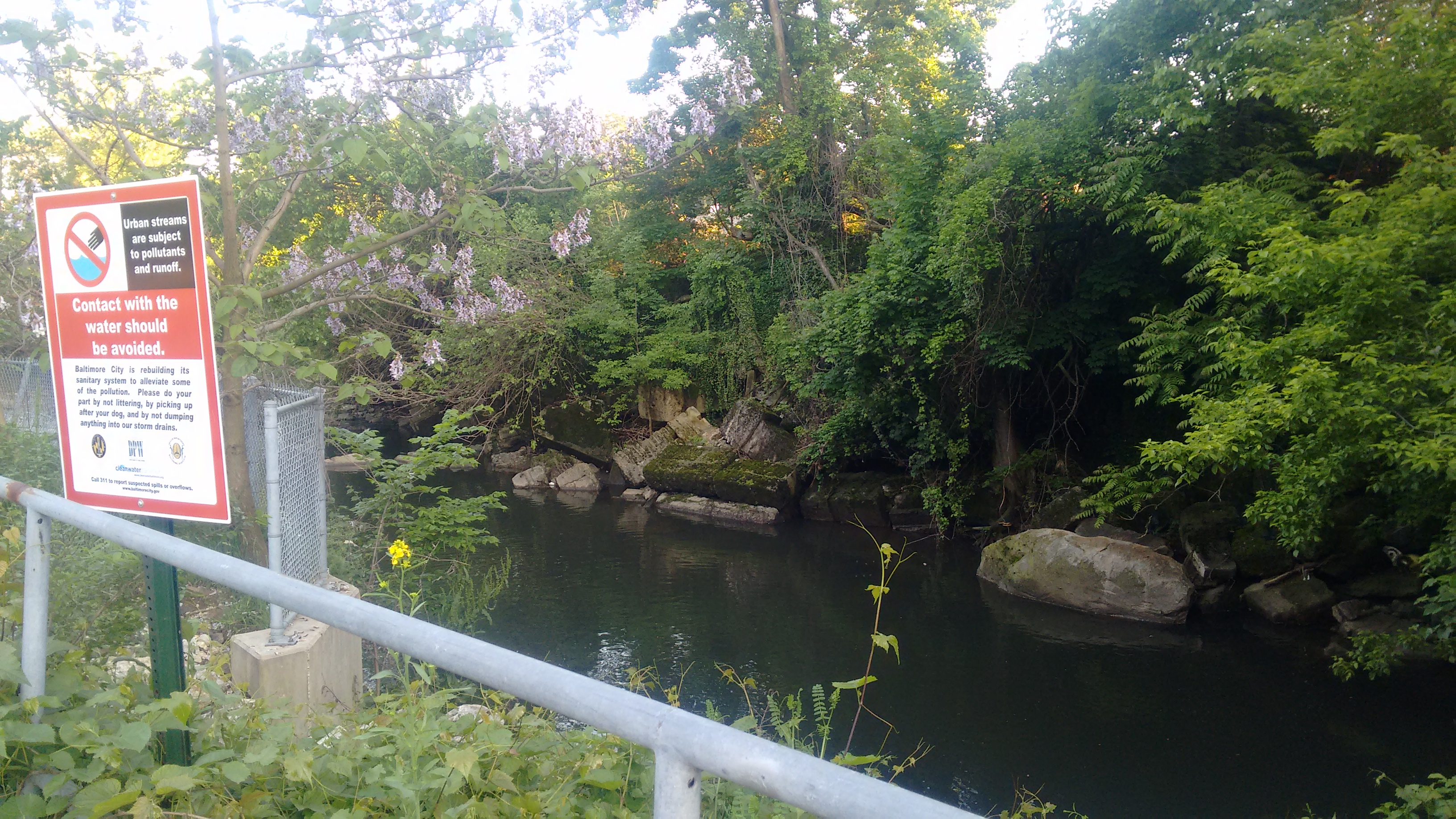 One of my favorite places to ride my bike in Baltimore is the Jones Falls Trail between North Avenue and Druid Hill Park. The trail follows the last section of the Jones Falls before it flows underground in pipes underneath downtown on its way to the Inner Harbor, in a narrow stream valley below the